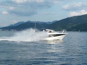 松山港からボートで10分ほど走れば本船航路に出られる。