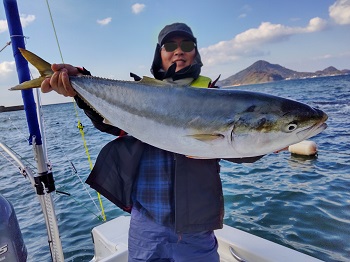 ”青い島のカリスマ”キャメリアがハマチを釣りました。
