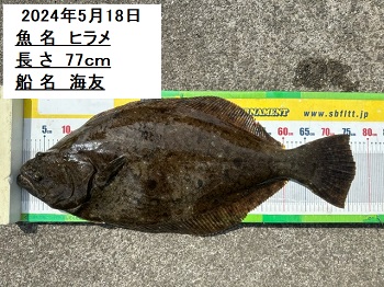 77cm(3.84㎏)の座布団ヒラメが釣れました。