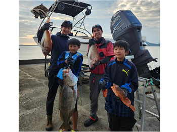ジュニアキッズアングラーが、61cmのタイを含めて4枚も釣り上げました。